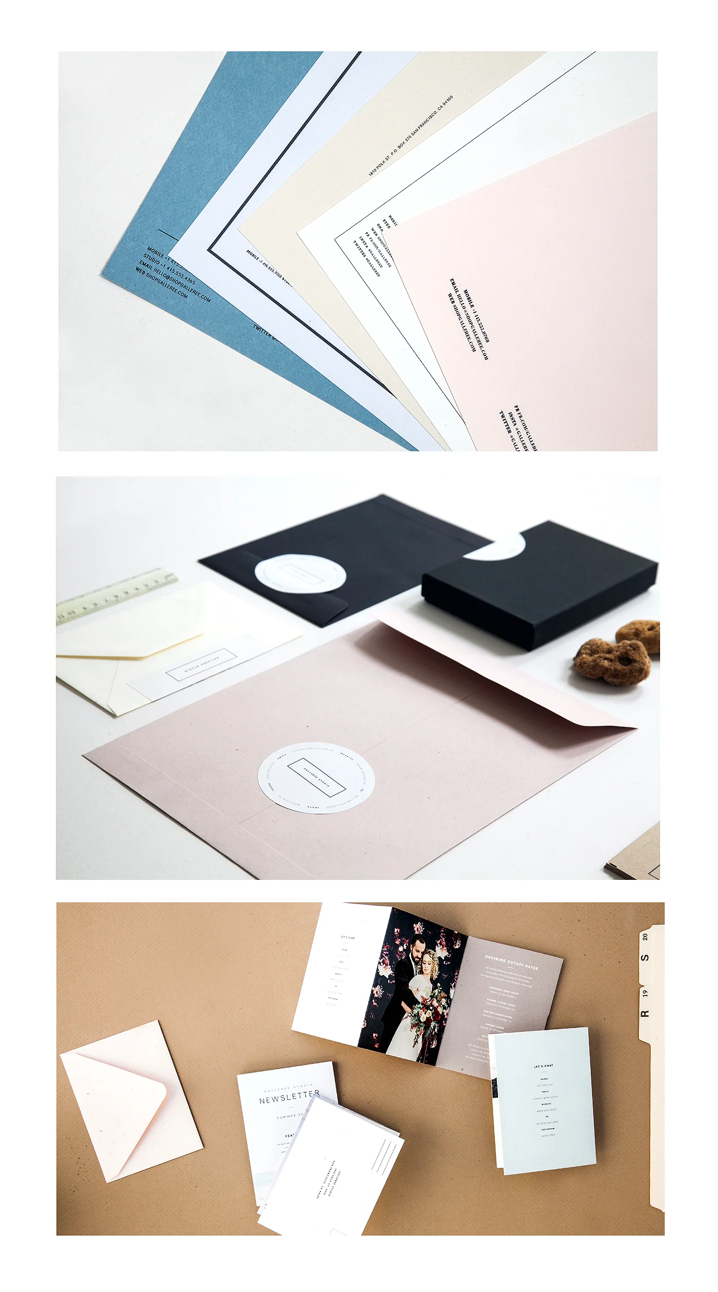 After filling my head to the brim with the concept of “the new minimalism”, which is considered to be the next wave of popular graphic design, I got to work with my team. In order to make a big shift in our vision and aesthetic, I had to pause our weekly releases for the Summer. We worked harder than we ever have in the history of Galler.ee to come up with 30 new products, design them, and style them in a fresh way. I was tired of styling with florals and “rustic” elements, gold staplers and turquoise office products; everyone is doing that now. I wanted modern. Really modern. We looked to 1950’s office aesthetic, 1970’s color choices, and classic Bauhausian minimalism to inform every choice we made for the new Galler.ee. Everything from the font on the website to the pens displayed in our product photographs had this intent behind it. Some days it felt like we were feeling around in the dark. Lots of questions about what was the right thing to do. But we kept going to meet the self-imposed deadline of September 15. It became our mantra, and every second of every day I couldn’t stop thinking about Galler.ee. I didn’t know how it would all come together either; you never fully do until you have it all right there in front of you. I wanted to create a design world that photographers could buy into and make their business look next-level. I wanted to create something of an Ikea for photographers, where although each design piece is unique, they would all have a level of consistency when sat side-by-side together. And I wanted to bring photographers the kind of design firms pay tens of thousands of dollars for, for just $25/month.